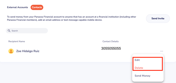 Click on the three dots next to your contact name and select Edit or Delete depending on the action you want to take.