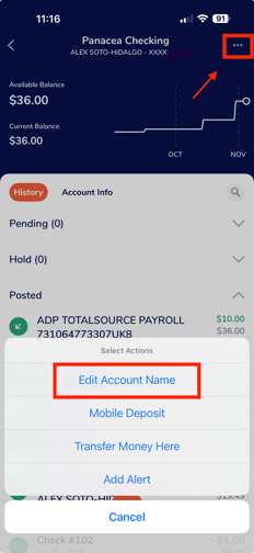 On the next screen, click on the three dots in the upper right-hand side corner and select Edit Account Name.