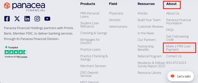 You can pay your loan via debit card by going to our website www.panaceafinancial.com, and scroll all the way to the bottom of the page until you find the About section, click on Make a Loan Payment.